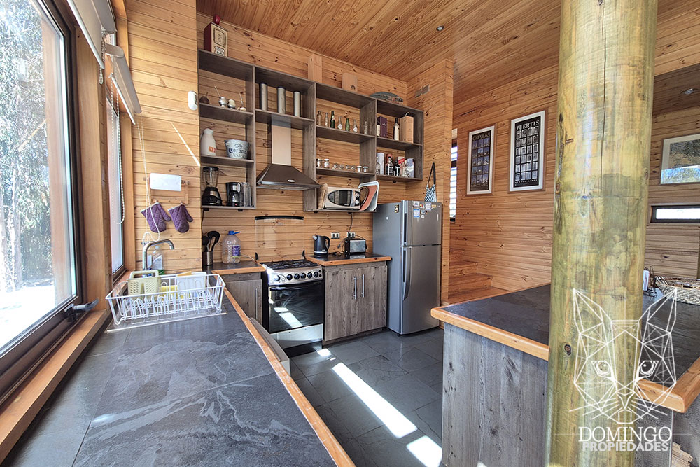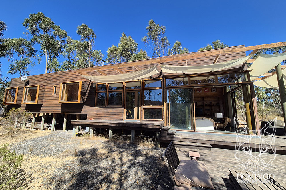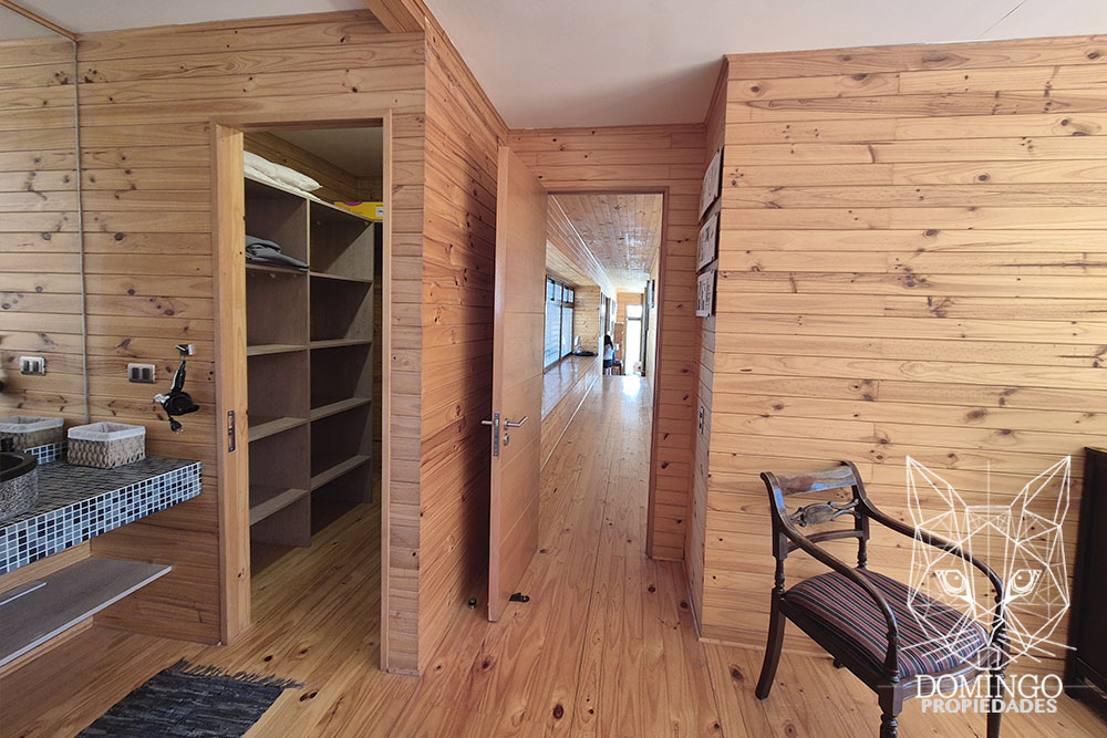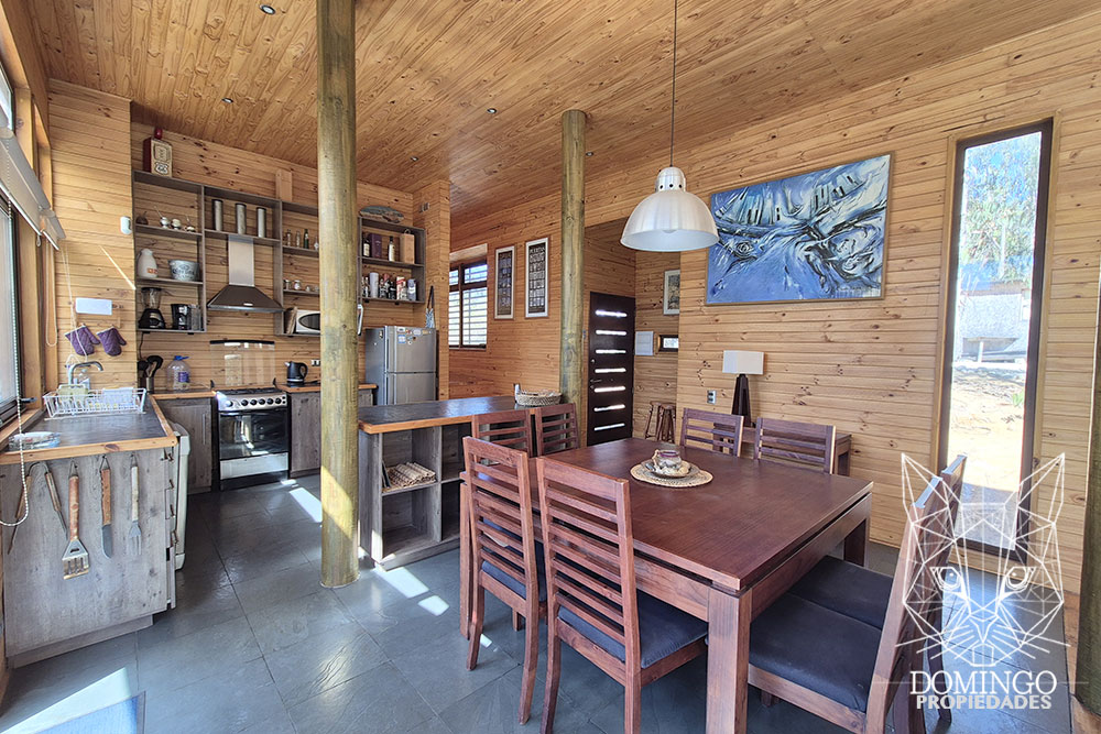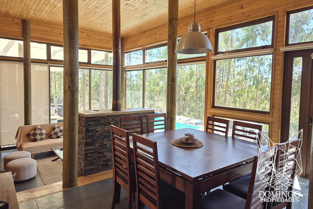 La vivienda posee estructura de madera sobre fundaciones de hormigón, con soluciones constructivas pensadas para confort térmico durante todo el año.