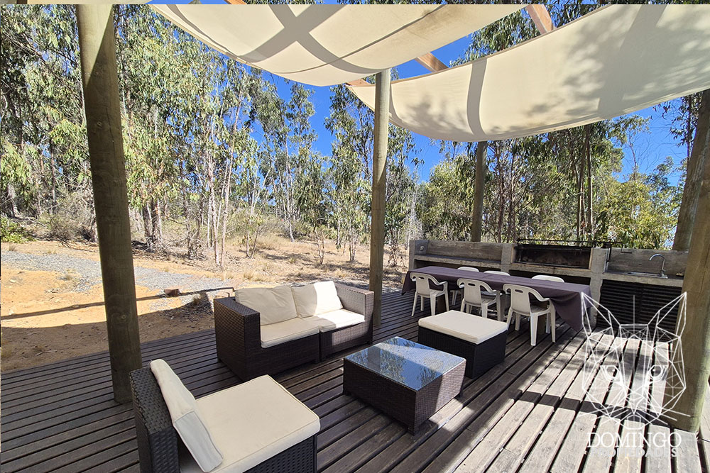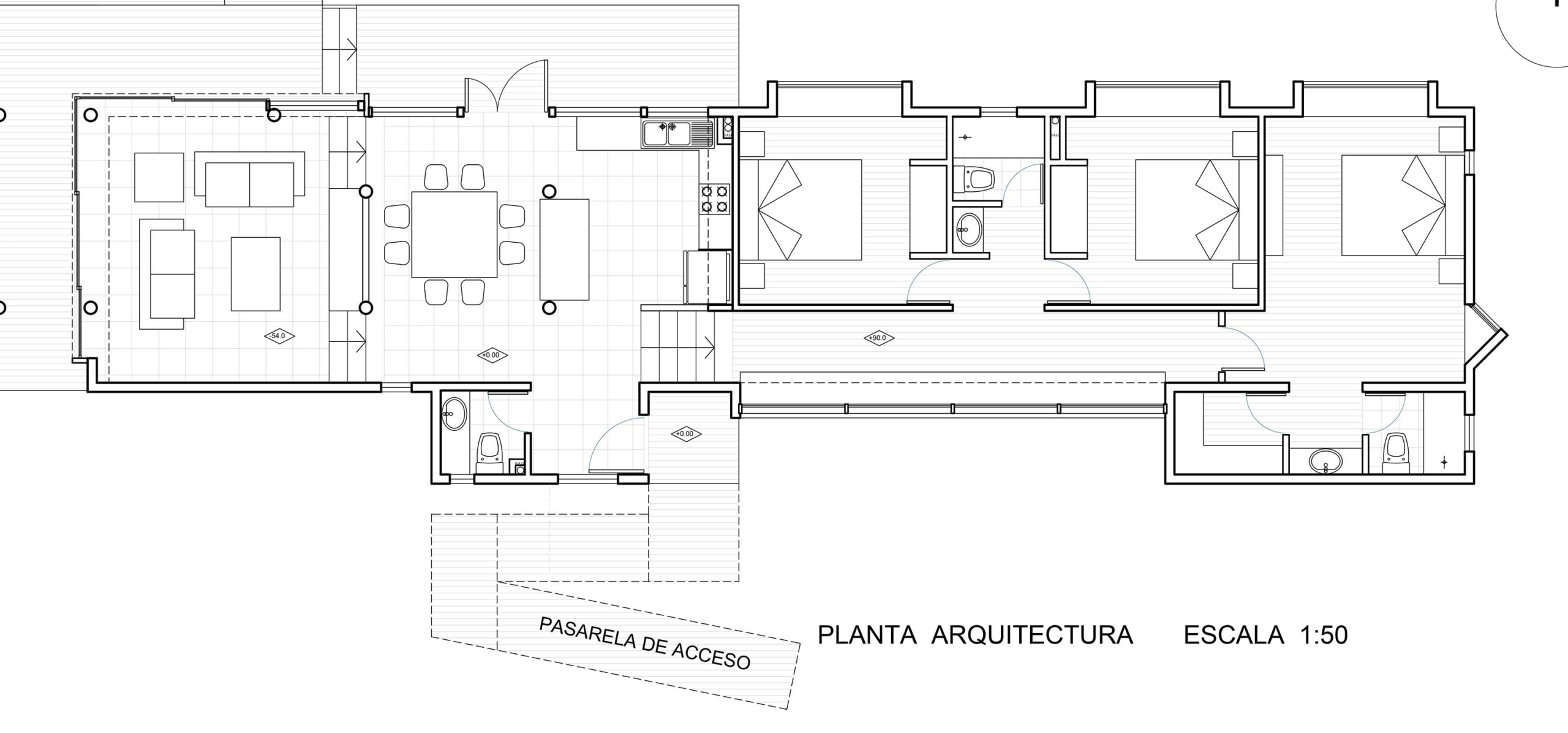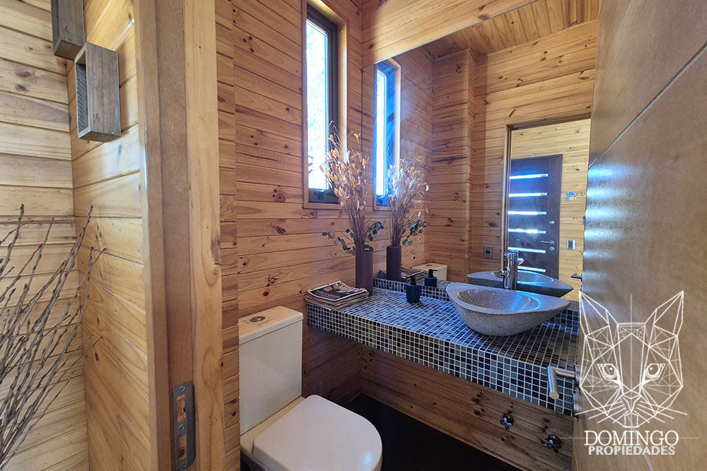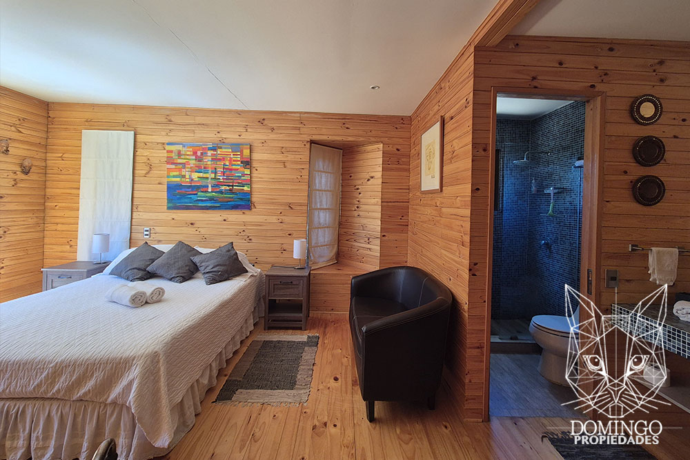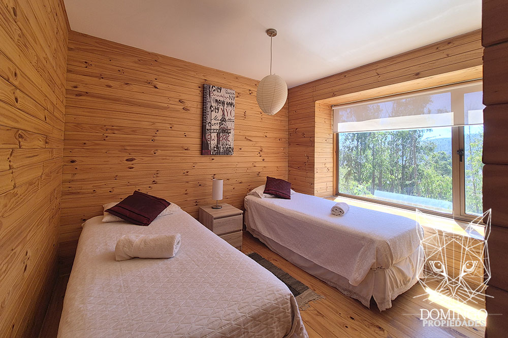 La vivienda posee estructura de madera sobre fundaciones de hormigón, con soluciones constructivas pensadas para confort térmico durante todo el año.