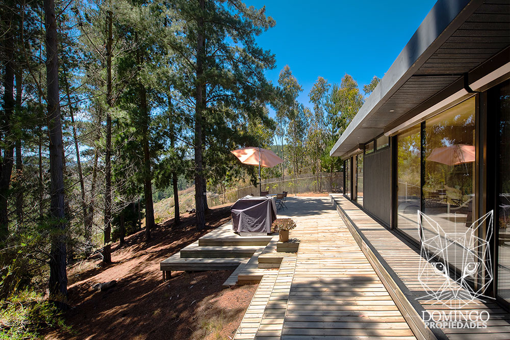 Una gran bodega y leñera completan los espacios funcionales de esta casa, que se mantiene resguardada por los pinos para asegurar total privacidad.