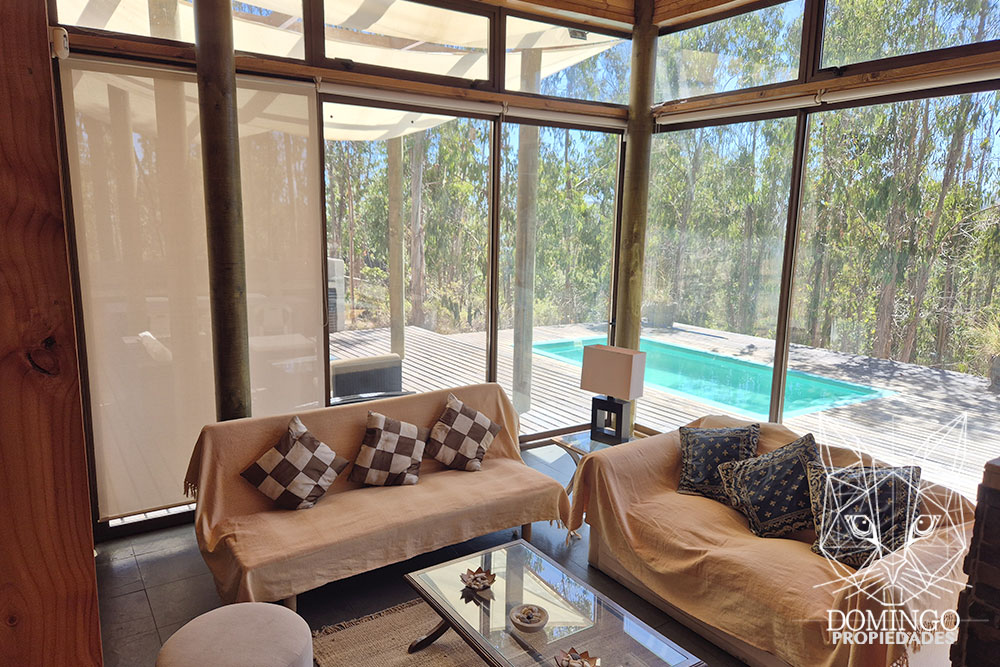 La casa se emplaza en una parcela de 5.200 m², rodeada de bosque nativo y tranquilidad, ofreciendo una experiencia de vida conectada con la naturaleza a minutos de la playa.